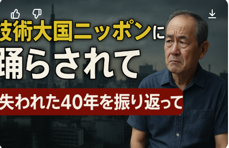 「技術大国ニッポン」――それは、昭和・平成を生きた日本人なら誰もが一度は耳にし、疑うことなく信じてきた言葉かもしれません。自動車、家電、ハイテク、ものづくり…そうした分野で世界をリードしてきたという自負。特に団塊世代やその子世代にとっては、それが誇りであり、国家のアイデンティティそのものでした。